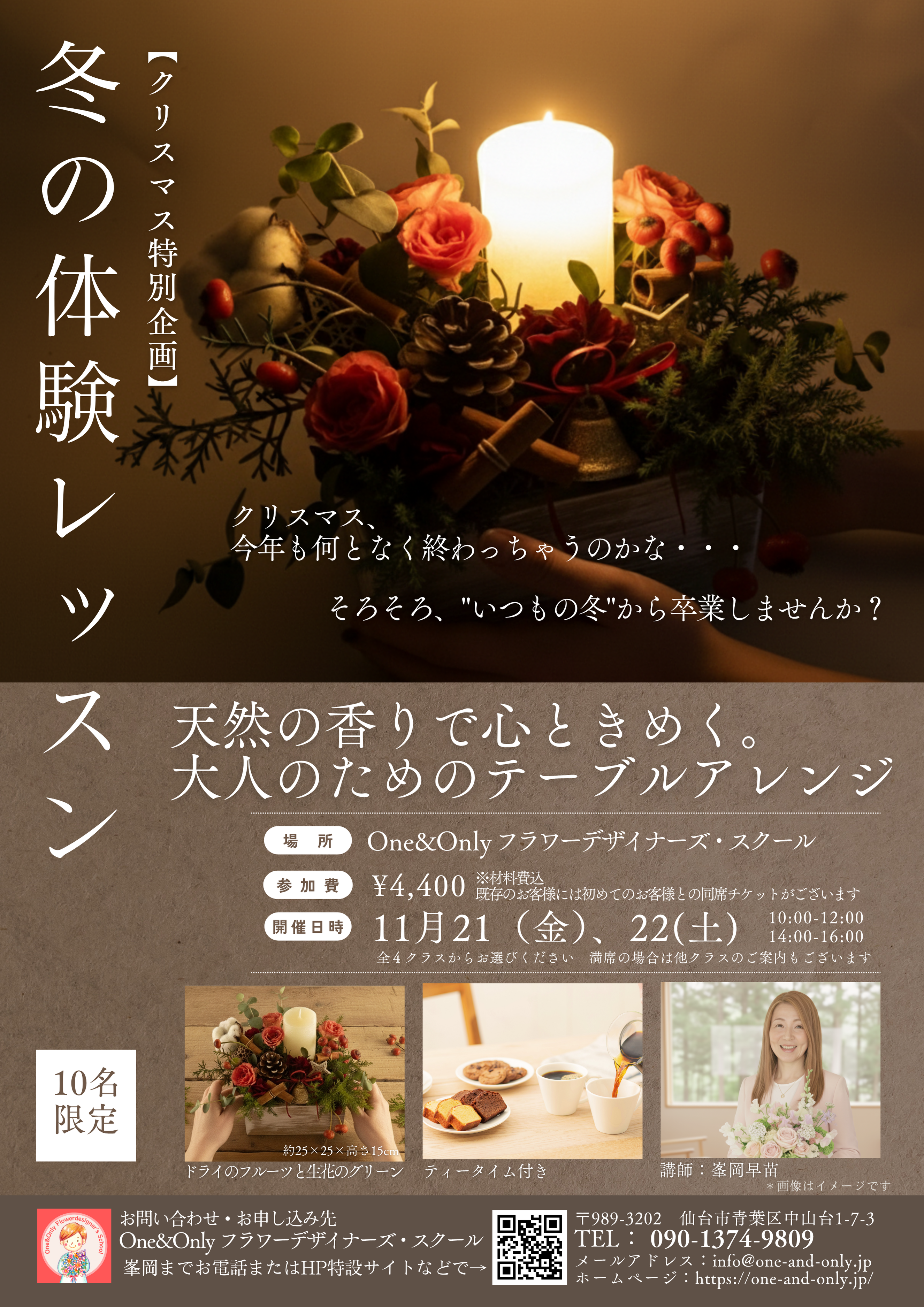 通常の体験レッスンとは別に、クリスマスだけの特別なアレンジメントレッスンをご用意いたしました。