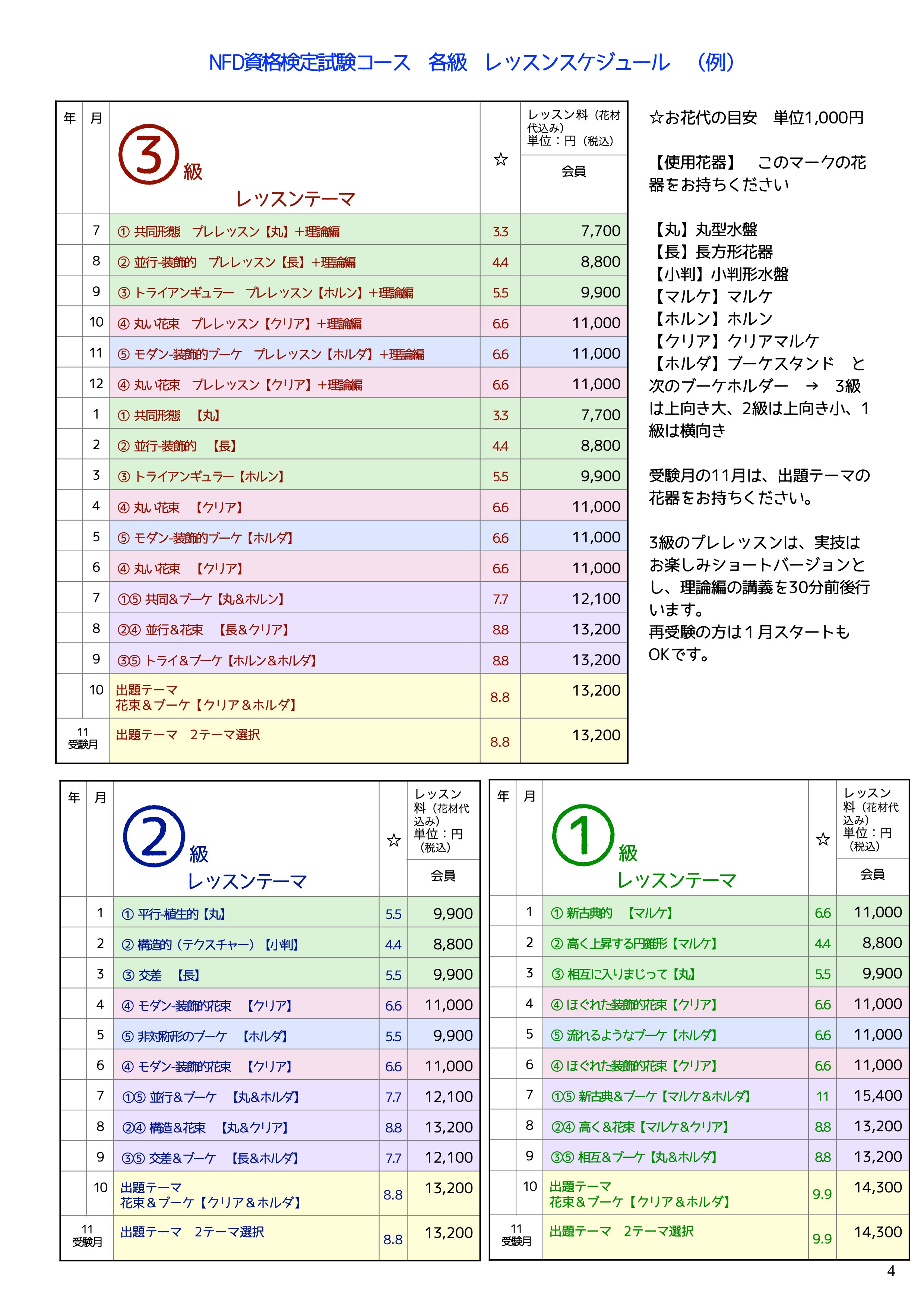プログラム(レッスン日)とパンフレット