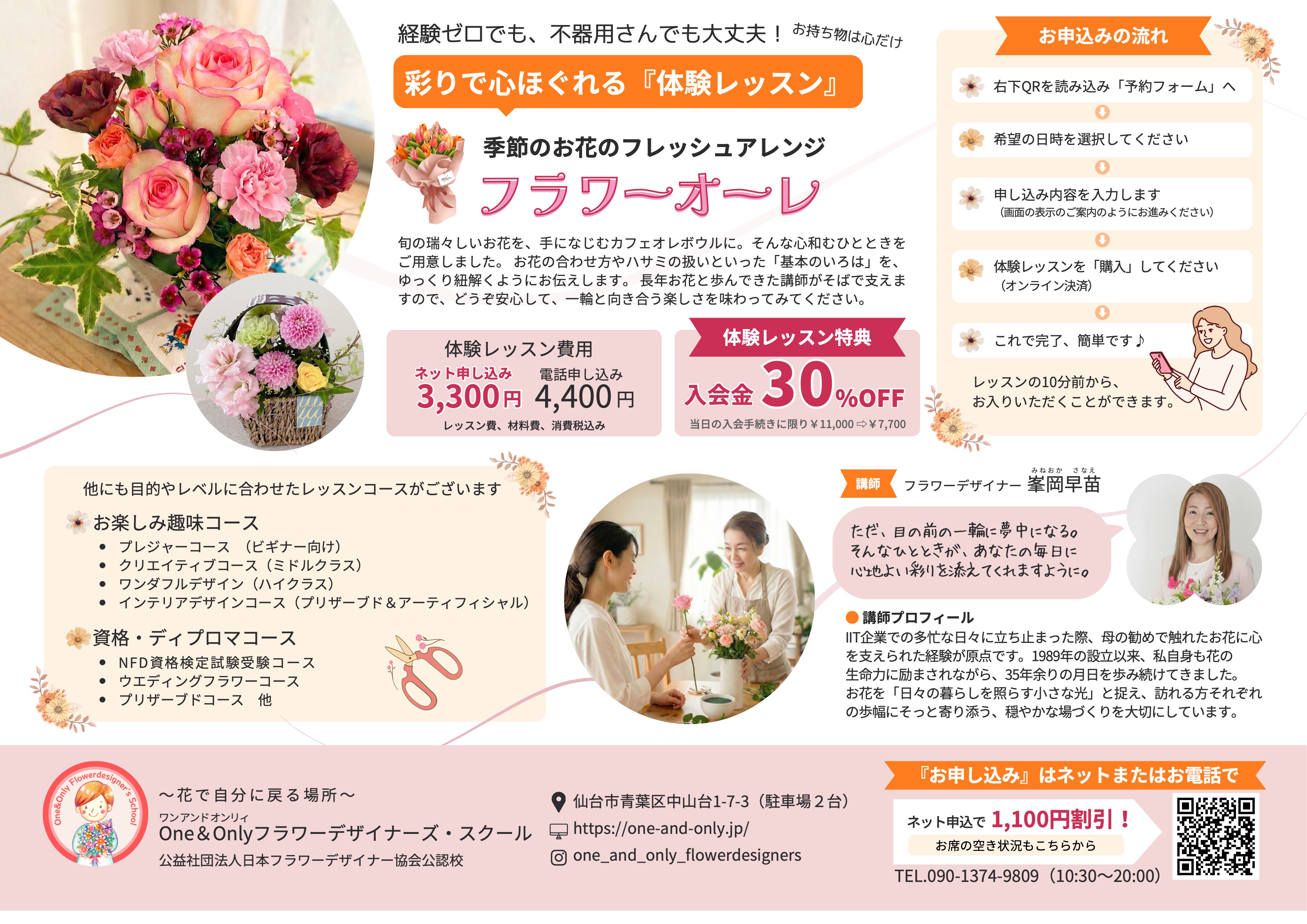 One&Only(ワンアンドオンリイ)フラワーデザイナーズ・スクールのスタイルを、まずは一度体感してみませんか?