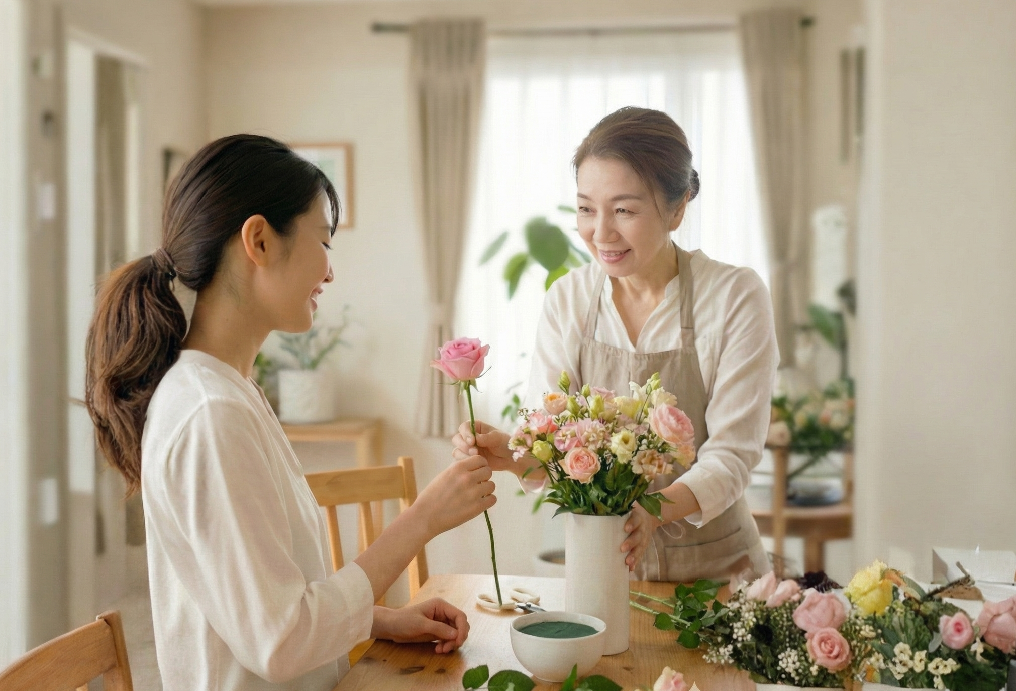 お花と向き合う時間は、日常の忙しさをふっと忘れさせてくれます。